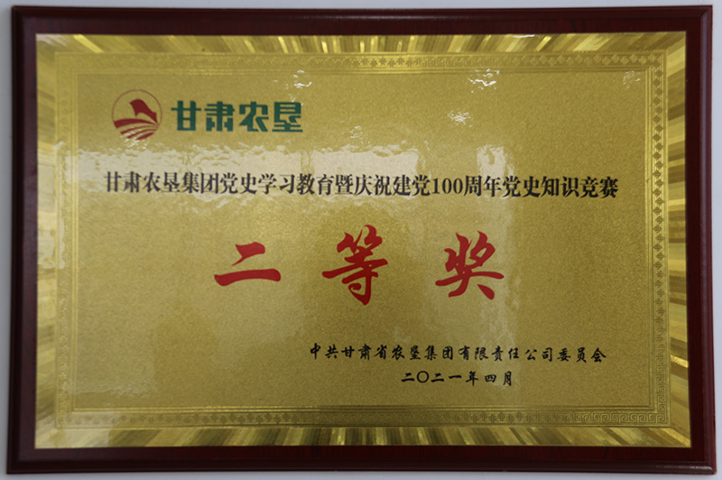 甘肃农垦集团党史学习教育暨庆祝建党100周年党史知识竞赛二等奖