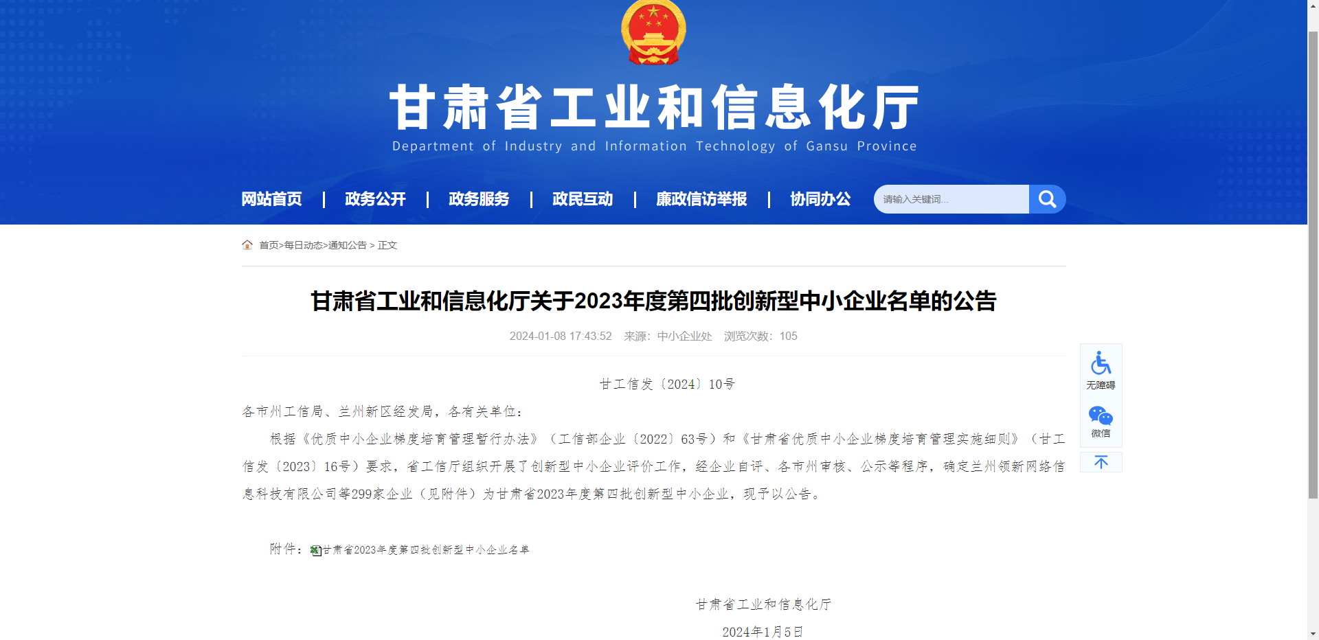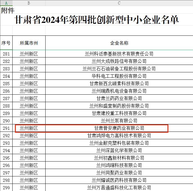 近日,甘肃省工业和信息化厅公布2023年度第四批创新型中小企业名单,甘肃普安康药业有限公司榜上有名。