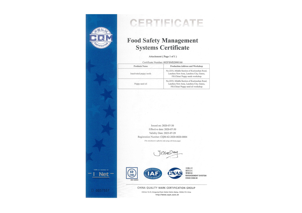 食品安全管理体系认证证书英文
