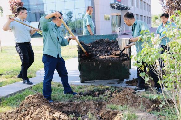 在公司领导的带领下,全体党员干部有的修剪草坪,有的清理草坪里的枯枝、杂草,有的开着三轮车运送肥料。虽然天气炎热,但是大家干的如火如荼,汗流浃背,干劲十足。经过两个多小时的清扫,公司的环境卫生焕然一新。